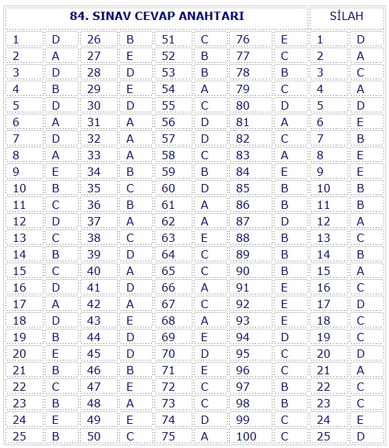 84. Sınav cevapları EGM tarafından açıklandığından üzerinde işaretleme yapılmamış olup kaynağından alınan cevaplar altta verilmiştir.